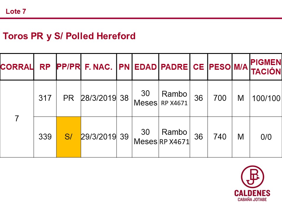 LOTE 6, TORO PURO REGISTRADO (Corral 7)