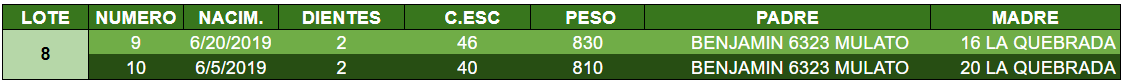 LOTE 8, TOROS PUROS POR CRUZA