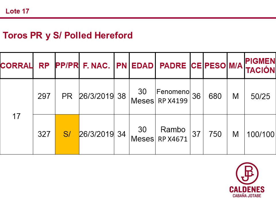 LOTE 11, TORO PURO REGISTRADO (Corral 17) 🔥 🔥 🔥 Lote Anterior Volver al remate Lote Siguiente Información del Lote Animales del Lote Pedigree Ofertar Contacto Buenos Aires - Información del Lote Identificador: #125513 Cantidad 2 Categoría Machos Registrados Raza Hereford Departamento Buenos Aires Plazo Consultar Buenos Aires - Ofertar Fecha de cierre: 02 de Septiembre a las 12:05hs. Prórroga: 5 minutos Aún no tiene ofertas Animales: 297 327 Plazo: Contado 30 días 45 días 60 días 90 días 120 días 180 días Contado, 30 y 60 dias Su Oferta en $: − + Step: -10.000,00 / +10.000,00 Programar puja hasta: Programar puja hasta Aumentar puja programada 240000 420000 **Oferta al bulto Iniciar sesión para ofertar Ofertar Compra por $ 99.000.000,00 Ofertas Recibidas $ Fecha/Hora Estado Este lote aún no tiene preofertas. ¿Estás seguro de comprar el LOTE TORO PURO REGISTRADO (Corral 17) por $ 99000000 ? 120 Visualizaciones ClicData Animales del Lote RP 297 327 PRECIO BASE 0.00 0.00 RP 297 PRECIO BASE 0.00 RP 327 PRECIO BASE 0.00 Pedigree Contacto Comercial a cargo: Paulo Empresa: Caldenes Agropecuaria Nombre*: E-mail* : Mensaje Por informes y consultas 03382 15 418112 Enviar Registrese gratis Este contenido Exclusivo está disponible sólo para usuarios registrados Ingresar