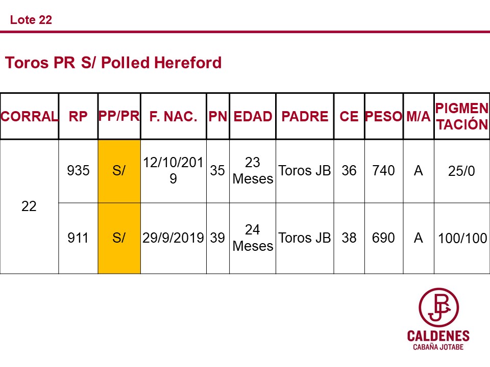LOTE 27, TOROS (Corral 22) Lote Anterior Volver al remate Lote Siguiente Información del Lote Animales del Lote Pedigree Ofertar Contacto Buenos Aires - Información del Lote Identificador: #125527 Cantidad 2 Categoría Toros Raza Hereford Departamento Buenos Aires Plazo Consultar Buenos Aires - Ofertar Fecha de cierre: 02 de Septiembre a las 12:05hs. Prórroga: 5 minutos Aún no tiene ofertas Animales: 935 911 Plazo: Contado 30 días 45 días 60 días 90 días 120 días 180 días Contado, 30 y 60 dias Su Oferta en $: − + Step: -10.000,00 / +10.000,00 Programar puja hasta: Programar puja hasta Aumentar puja programada 270000 450000 **Oferta al bulto Iniciar sesión para ofertar Ofertar Compra por $ 99.000.000,00 Ofertas Recibidas $ Fecha/Hora Estado Este lote aún no tiene preofertas. ¿Estás seguro de comprar el LOTE TOROS (Corral 22) por $ 99000000 ? 57 Visualizaciones ClicData Animales del Lote RP 935 911 PRECIO BASE 0.00 0.00 RP 935 PRECIO BASE 0.00 RP 911 PRECIO BASE 0.00 Pedigree Contacto Comercial a cargo: Paulo Empresa: Caldenes Agropecuaria Nombre*: E-mail* : Mensaje Por informes y consultas 03382 15 418112 Enviar Registrese gratis Este contenido Exclusivo está disponible sólo para usuarios registrados Ingresar