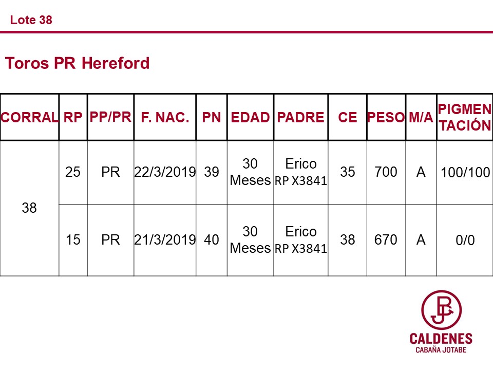 LOTE 44, TORO PURO REGISTRADO(Corral 38) Lote Anterior Volver al remate Lote Siguiente Información del Lote Animales del Lote Pedigree Ofertar Contacto Buenos Aires - Información del Lote Identificador: #125542 Cantidad 2 Categoría Machos Registrados Raza Hereford Departamento Buenos Aires Plazo Consultar Buenos Aires - Ofertar Fecha de cierre: 02 de Septiembre a las 12:05hs. Prórroga: 5 minutos Aún no tiene ofertas Animales: 25 15 Plazo: Contado 30 días 45 días 60 días 90 días 120 días 180 días Contado, 30 y 60 dias Su Oferta en $: − + Step: -10.000,00 / +10.000,00 Programar puja hasta: Programar puja hasta Aumentar puja programada 240000 420000 **Oferta al bulto Iniciar sesión para ofertar Ofertar Compra por $ 99.000.000,00 Ofertas Recibidas $ Fecha/Hora Estado Este lote aún no tiene preofertas. ¿Estás seguro de comprar el LOTE TORO PURO REGISTRADO(Corral 38) por $ 99000000 ? 48 Visualizaciones ClicData Animales del Lote RP 25 15 PRECIO BASE 0.00 0.00 RP 25 PRECIO BASE 0.00 RP 15 PRECIO BASE 0.00 Pedigree Contacto Comercial a cargo: Paulo Empresa: Caldenes Agropecuaria Nombre*: E-mail* : Mensaje Por informes y consultas 03382 15 418112 Enviar Registrese gratis Este contenido Exclusivo está disponible sólo para usuarios registrados Ingresar