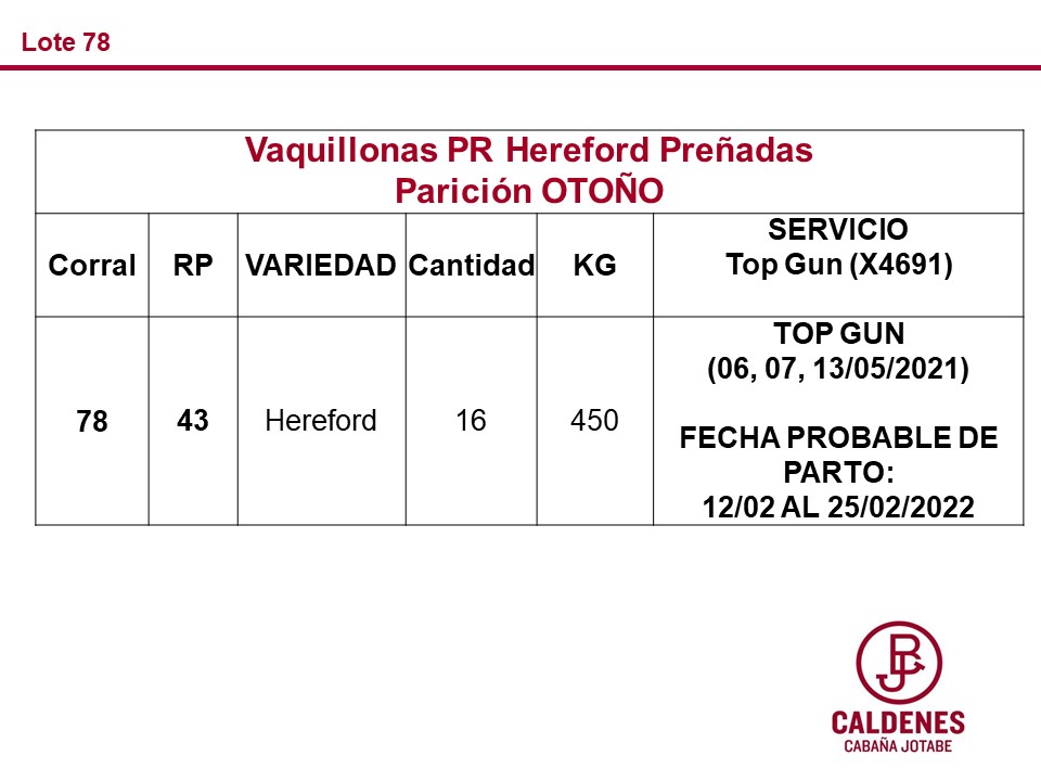 LOTE 71, Vaquillonas PR hereford preñadas parición Otoño(Corral 78) Lote Anterior Volver al remate Lote Siguiente Información del Lote Pedigree Ofertar Contacto Buenos Aires - Información del Lote Identificador: #125576 Cantidad 16 Categoría Hembras Registrados Raza Hereford Departamento Buenos Aires Plazo Consultar Buenos Aires - Ofertar Fecha de cierre: 02 de Septiembre a las 12:05hs. Prórroga: 5 minutos Aún no tiene ofertas Plazo: Contado 30 días 45 días 60 días 90 días 120 días 180 días Contado, 30 y 60 dias Su Oferta en $: − + Step: -10.000,00 / +10.000,00 Programar puja hasta: Programar puja hasta Aumentar puja programada 140000 320000 **Oferta al bulto Iniciar sesión para ofertar Ofertar Compra por $ 99.000.000,00 Ofertas Recibidas $ Fecha/Hora Estado Este lote aún no tiene preofertas. ¿Estás seguro de comprar el LOTE Vaquillonas PR hereford preñadas parición Otoño(Corral 78) por $ 99000000 ? 36 Visualizaciones ClicData Pedigree Contacto Comercial a cargo: Paulo Empresa: Caldenes Agropecuaria Nombre*: E-mail* : Mensaje Por informes y consultas 03382 15 418112 Enviar Registrese gratis Este contenido Exclusivo está disponible sólo para usuarios registrados Ingresar