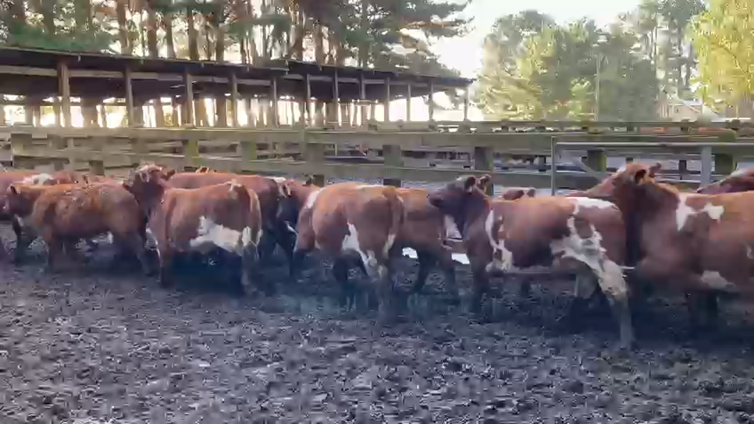 Terneras de muy buena calidad, predio Pabco A. Angus rojo y clavelas. Dentro del lote van 5 terneras doble pulpas. pesaje en el fundo con destara de 1% x cada 100 kg. Se adjunta foto de toro que es padre de un % de las terneras. Crianza de Leonardo García.