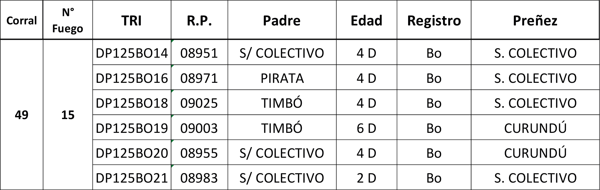 | Observaciones | Total 6 Vaquillonas Peso Promedio 500 Kg. |
