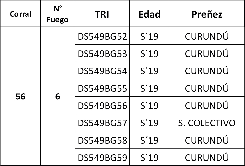 LOTE 56, Vaquillas Braford Generales-Preñadas IATF (17-12-2021) y Servicio Colectivo (27/12/21 al 05/02/22)
