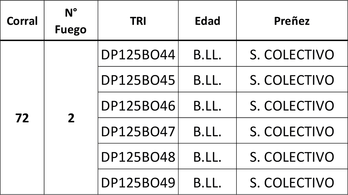 | Observaciones | Total 6 Vacas Peso Promedio 560 Kg. |