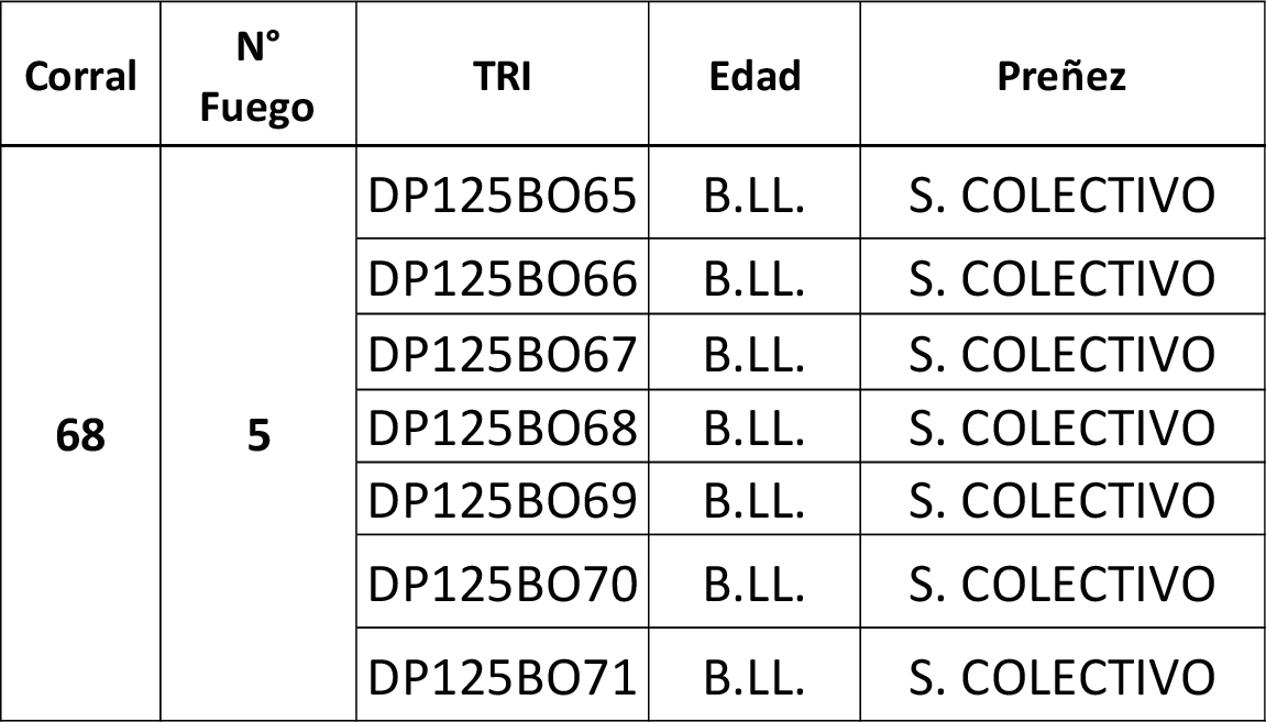 | Observaciones | Total 7 Vacas Peso Promedio 570 Kg. |