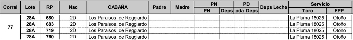 LOTE 28 A, VAQUILLONAS PURA CONTROLADAS PREÑADAS DE LA CABAÑA ""LOS PARAISOS"" DE REGGIARDO"