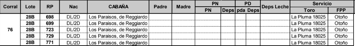 LOTE 28 B, VAQUILLONAS PURA CONTROLADAS PREÑADAS DE LA CABAÑA ""LOS PARAISOS"" DE REGGIARDO"