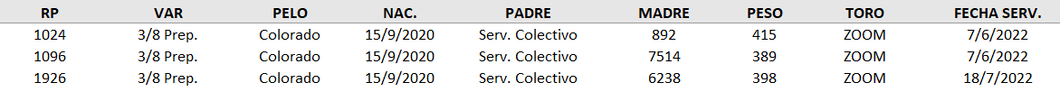 Vaquillas Preñadas Registradas