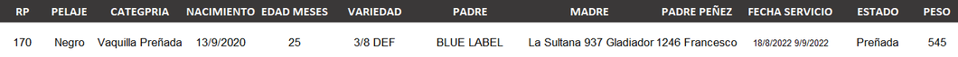 Vaquillas Preñadas Registradas