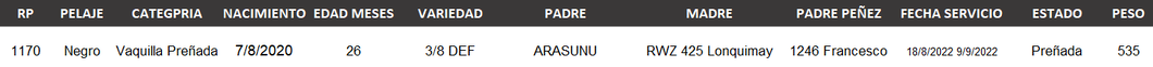 Vaquillas Preñadas Registradas
