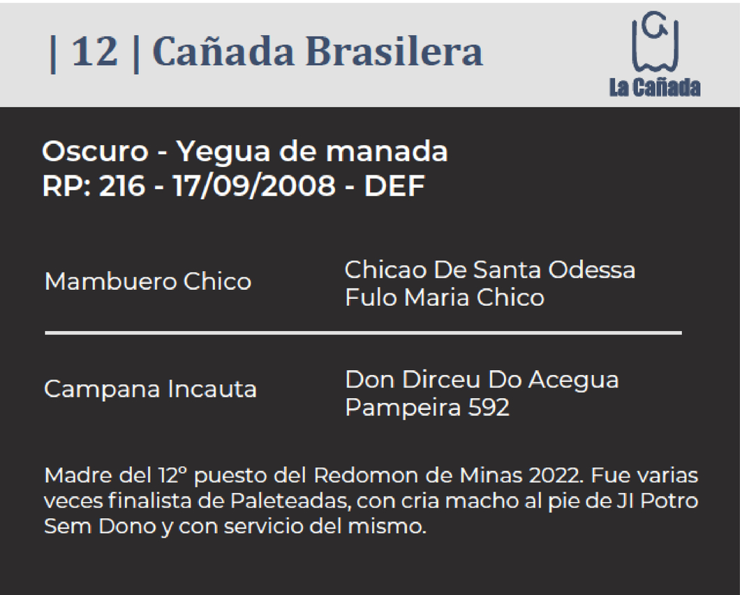Madre de 12º puesto del Redomón de Minas 2022 , fue varias veces finalista de Paleteadas, com cría macho al pie JI
