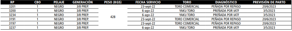 Vaquillas Preñadas Registradas