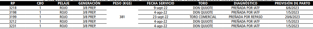 Vaquillas Preñadas Registradas