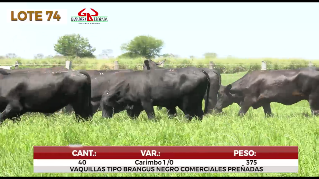 Lote doble marca. 34 preñadas con servicio de IA desde el 28/08/2022 hasta 28/09/2022 con los toros Yacu, Campeador, Marchisio, Mazacote y repaso con toros de la raza Brangus hasta el 15/10/2022. 6 preñadas con servicio de IA en 4/04/2022 y 5/04/2022 con los toros Yacu, Campeador, Marchisio, Mazacote y repaso con toros de la raza Brangus hasta el 15/07/2022.