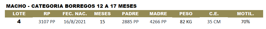 Importado de Argentina, circunferencia escrotal 35 cm, motilidad espermática