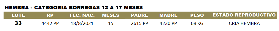 Borrega 2 D, PP, nacida el 18/08/22. Padre RUNVICAR 2615, madre Runvicar 4230,