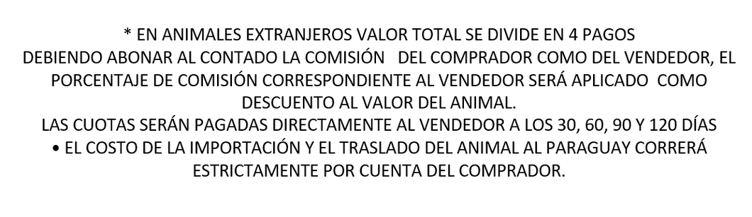 * EN ANIMALES EXTRANJEROS VALOR TOTAL SE DIVIDE EN 4 PAGOS