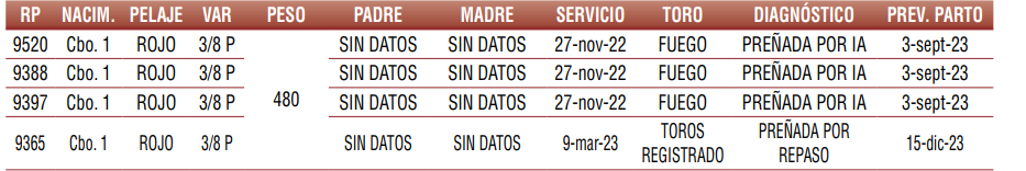 Vaquillas Preñadas Registradas