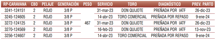 Vaquillas Preñadas Registradas