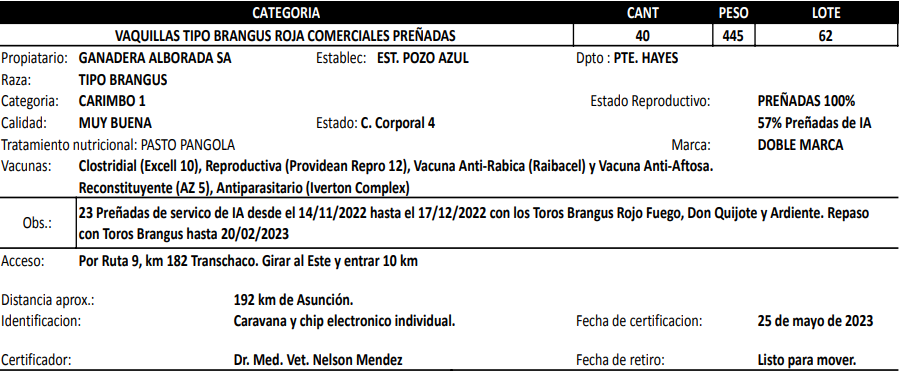 | Raza | TIPO BRANGUS ROJO |