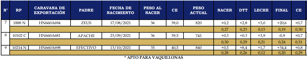 LOTE 5, TOROS ANGUS PUROS CONTROLADOS 🔥 🔥 🔥 Lote Anterior Volver al remate Lote Siguiente Información del Lote Animales del Lote Pedigree Ofertar Contacto Buenos Aires - 9 de Julio. - Buenos Aires. Información del Lote Identificador: #232548 Cantidad 3 Categoría Toros Departamento Buenos Aires Ubicación 9 de Julio. - Buenos Aires. Buenos Aires - 9 de Julio. - Buenos Aires. Ofertar Fecha de cierre: 30 de Agosto a las 20:00hs. Aún no tiene ofertas Animales: (7) 1888 N (8) 10102 C (9) 10214 N Plazo: Contado 30 días 45 días 60 días 90 días 120 días 180 días Contado, 30 y 60 dias Su Oferta en $: − + Step: -50.000,00 / +50.000,00 Programar puja hasta: Programar puja hasta Aumentar puja programada 750000 1650000 **Oferta al bulto Iniciar sesión para ofertar Ofertar Compra por $ 99.000.000,00 Ofertas Recibidas $ Fecha/Hora Estado Este lote aún no tiene preofertas. ¿Estás seguro de comprar el LOTE TOROS ANGUS PUROS CONTROLADOS por $ 99000000 ? 64 Visualizaciones ClicData Animales del Lote RP (7) 1888 N (8) 10102 C (9) 10214 N PADRE ZEUS APACHE EFECTIVO NAC 17/8/2021 23/9/2021 13/10/2021 CE 39 39,5 40,5 PF 820 745 840 PN 36 36 35 PRECIO BASE 0.00 0.00 0.00 RP (7) 1888 N PADRE ZEUS NAC 17/8/2021 CE 39 PF 820 PN 36 PRECIO BASE 0.00 RP (8) 10102 C PADRE APACHE NAC 23/9/2021 CE 39,5 PF 745 PN 36 PRECIO BASE 0.00 RP (9) 10214 N PADRE EFECTIVO NAC 13/10/2021 CE 40,5 PF 840 PN 35 PRECIO BASE 0.00 Pedigree Contacto Empresa: La Cassina Nombre*: E-mail* : Mensaje Enviar Registrese gratis Este contenido Exclusivo está disponible sólo para usuarios registrados Ingresar