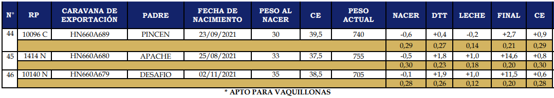LOTE 17, TOROS ANGUS PUROS CONTROLADOS Lote Anterior Volver al remate Lote Siguiente Información del Lote Animales del Lote Pedigree Ofertar Contacto Buenos Aires - 9 de Julio. - Buenos Aires. Información del Lote Identificador: #232560 Cantidad 3 Categoría Toros Departamento Buenos Aires Ubicación 9 de Julio. - Buenos Aires. Buenos Aires - 9 de Julio. - Buenos Aires. Ofertar Fecha de cierre: 30 de Agosto a las 20:00hs. Aún no tiene ofertas Animales: (44) 10096 C (45) 1414 N (46) 10140 N Plazo: Contado 30 días 45 días 60 días 90 días 120 días 180 días Contado, 30 y 60 dias Su Oferta en $: − + Step: -50.000,00 / +50.000,00 Programar puja hasta: Programar puja hasta Aumentar puja programada 750000 1650000 **Oferta al bulto Iniciar sesión para ofertar Ofertar Compra por $ 99.000.000,00 Ofertas Recibidas $ Fecha/Hora Estado Este lote aún no tiene preofertas. ¿Estás seguro de comprar el LOTE TOROS ANGUS PUROS CONTROLADOS por $ 99000000 ? 38 Visualizaciones ClicData Animales del Lote RP (44) 10096 C (45) 1414 N (46) 10140 N PADRE PINCEN APACHE DESAFIO NAC 23/9/2021 25/8/2021 2/11/2021 CE 39,5 37,5 38,5 PF 740 755 705 PN 30 33 35 PRECIO BASE 0.00 0.00 0.00 RP (44) 10096 C PADRE PINCEN NAC 23/9/2021 CE 39,5 PF 740 PN 30 PRECIO BASE 0.00 RP (45) 1414 N PADRE APACHE NAC 25/8/2021 CE 37,5 PF 755 PN 33 PRECIO BASE 0.00 RP (46) 10140 N PADRE DESAFIO NAC 2/11/2021 CE 38,5 PF 705 PN 35 PRECIO BASE 0.00 Pedigree Contacto Empresa: La Cassina Nombre*: E-mail* : Mensaje Enviar Registrese gratis Este contenido Exclusivo está disponible sólo para usuarios registrados Ingresar