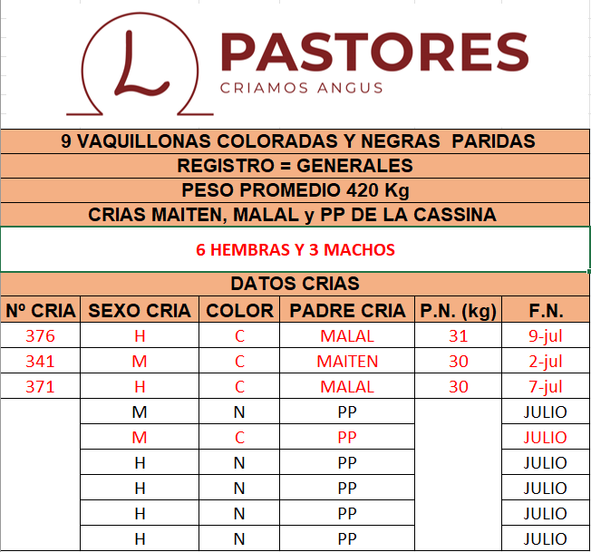 LOTE 32, CABAÑA PASTORES: 9 VAQUILLONAS COLORADAS Y NEGRAS PARIDAS 🔥 🔥 🔥 Lote Anterior Volver al remate Lote Siguiente Información del Lote Pedigree Ofertar Contacto Buenos Aires - 9 de Julio. - Buenos Aires. Información del Lote Identificador: #232886 Cantidad 9 Categoría Vaquillonas Peso Promedio 420 Departamento Buenos Aires Ubicación 9 de Julio. - Buenos Aires. Buenos Aires - 9 de Julio. - Buenos Aires. Ofertar Fecha de cierre: 30 de Agosto a las 20:00hs. Aún no tiene ofertas Plazo: Contado 30 días 45 días 60 días 90 días 120 días 180 días Contado, 30 y 60 dias Su Oferta en $: − + Step: -10.000,00 / +10.000,00 Programar puja hasta: Programar puja hasta Aumentar puja programada 280000 460000 **Oferta al bulto Iniciar sesión para ofertar Ofertar Compra por $ 99.000.000,00 Ofertas Recibidas $ Fecha/Hora Estado Este lote aún no tiene preofertas. ¿Estás seguro de comprar el LOTE CABAÑA PASTORES: 9 VAQUILLONAS COLORADAS Y NEGRAS PARIDAS por $ 99000000 ? 71 Visualizaciones ClicData Pedigree Contacto Empresa: La Cassina Nombre*: E-mail* : Mensaje Enviar Registrese gratis Este contenido Exclusivo está disponible sólo para usuarios registrados Ingresar