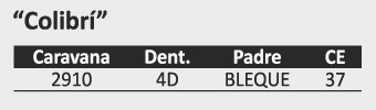 | OBSERVACIONES | Es un toro con excelente desarrollo y gran masa muscular. Hijo de “Bleque” (nacido en Santander por TE de la cabaña El Hinojo. Produce animales sumamente precoces y de fácil engorde. |