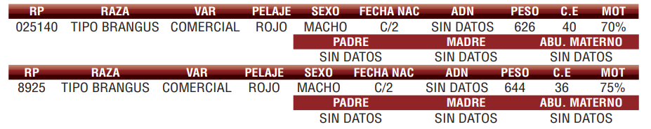 | Raza | BRANGUS ROJO |