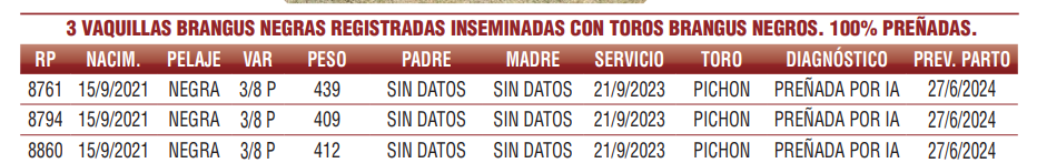 Vaquillas Preñadas Registradas