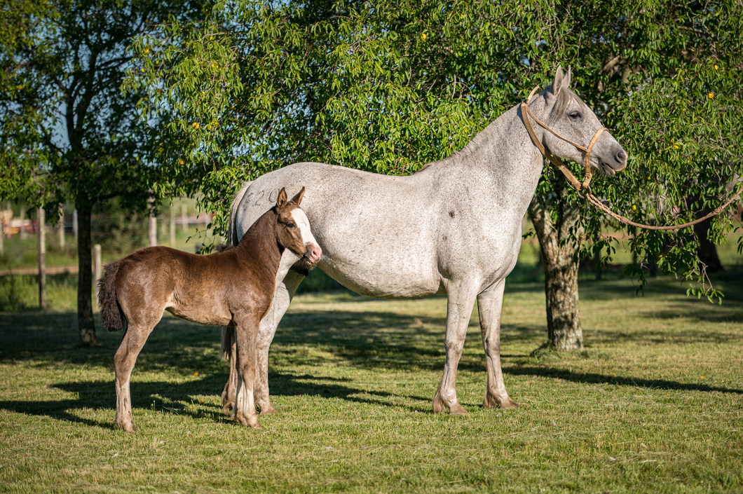 Trampolin). Potranca al pie hija de Amanhecido Acampamento (Butia Leopardo), nacida el 22/10/23.