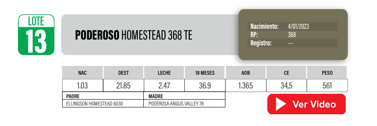 LOTE 13, Toros PI / PO / PC Angus a remate en Cabaña La Poderosa, Florida
