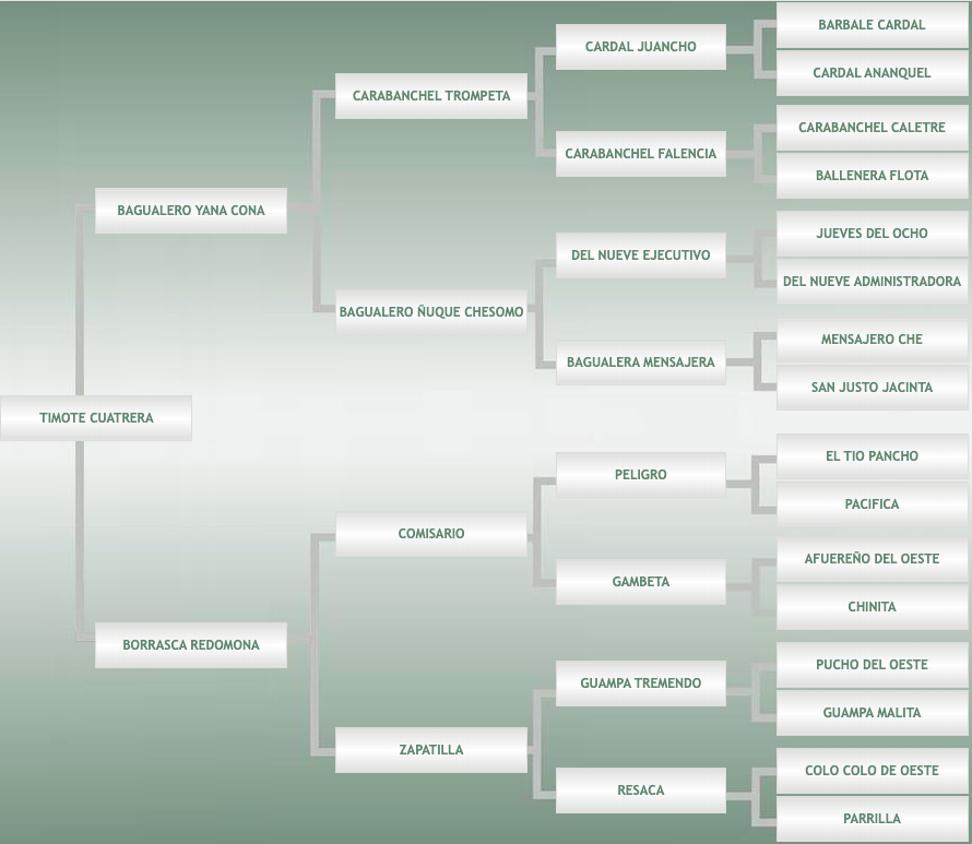 Combina sangres argentinas del Bagualero, Guampa Tremendo (RM, RGC Palermo) y Colo Colo del Oeste con las de San Pedro de Timote, Comisario, Peligro, Rubí y Pacífica 767 (ganadora de marcha). Cuatrera es una yegua que ha producido muy bien, quedando dos hijos en la cabaña.
