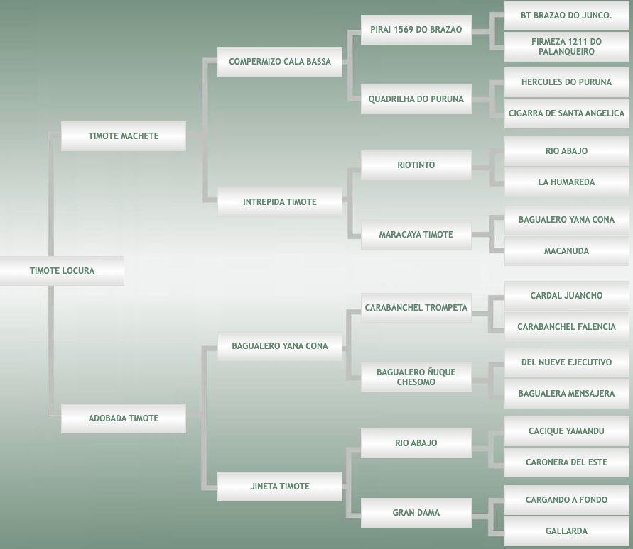 Combina sangres de largo aliento (Cargando, Rio Tinto, Cacique Yamandú, Rio Abajo) con sangres funcionales (Compermizo Cala Bassa, Pirai 1569, Hercules do Puruna, Santa Elba Señuelo, La Invernada Hornero)