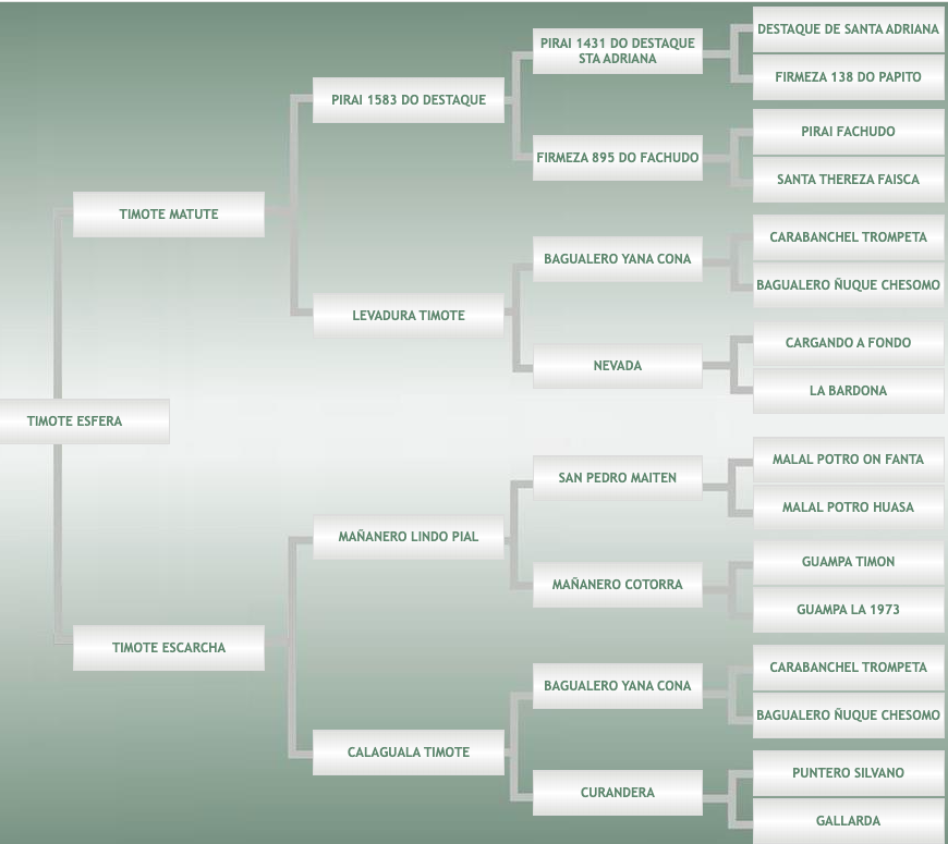 Combina sangres de San Pedro de Timote (Cargando a Fondo, Ventarrón, Gavilán, Gallarda, Guazubirá) con argentinas, de Ballester y Vásquez y brasileras de Moglia.