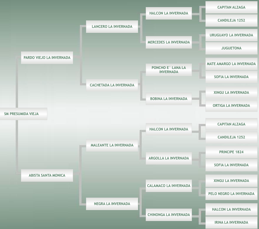 Presumida. Una rosilla mora muy dispuesta. Con sus 5 años es una yegua hecha, con buen desarrollo que tiene en su pedigree sangre de Lancero, poncho e’ lana, halcon, calamaco. Su madre la RP 18 nacida en Santa Monica es una yegua que se uso en las tropillas de la estancia y se destaco en su función ademas de su morfologia muy linda y correcta. Ideal para la competencia y para futuro reproductivo.