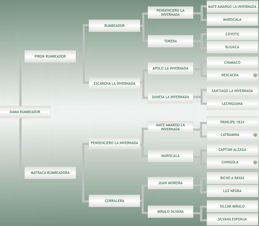 Su madre es hermana de Avispa Rumbeadora 1era Marcha Minas 2018, tambien de Pimienta Rumbeadora 1era Guichon 2011 y Tormenta Rumbeadora 1era Salto 2010.