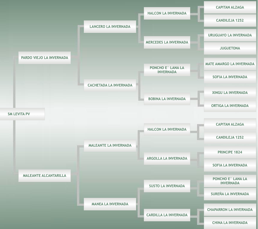 SM Levita es una hermosa yegua de 6 años hija de Pardo Viejo La Invernada (Lancero La Invernada) en una yegua nacida en Santa Monica nieta de Halcon y Susto La Invernada.