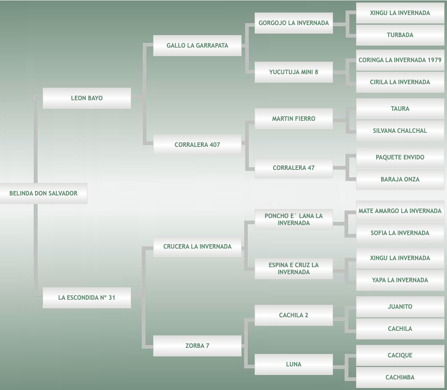 Hijo de León Bayo 55 y La eEscondida 31, por padre es hermano de Rp 208 ganador del Marchero del Norte 2024 y por madre de Serena don Salvador ganadora marcha Florida 2022 categoría menores.
