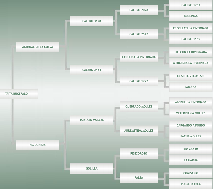 Su madre nieta de Rencoroso, padre de Tacuara, ganadora absoluta de la marcha de Artigas 2012. De los que cuesta echarlo a pista.