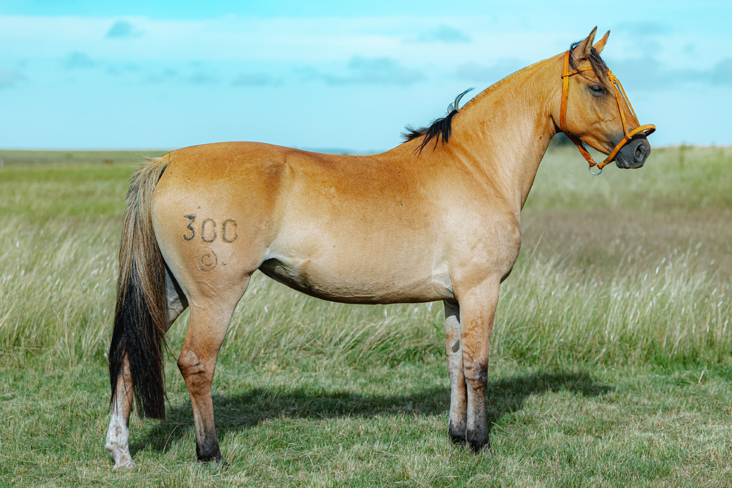 Es una yegua profunda, de líneas suaves, buenas angulaciones, muy linda cabeza y sello racial destacado.