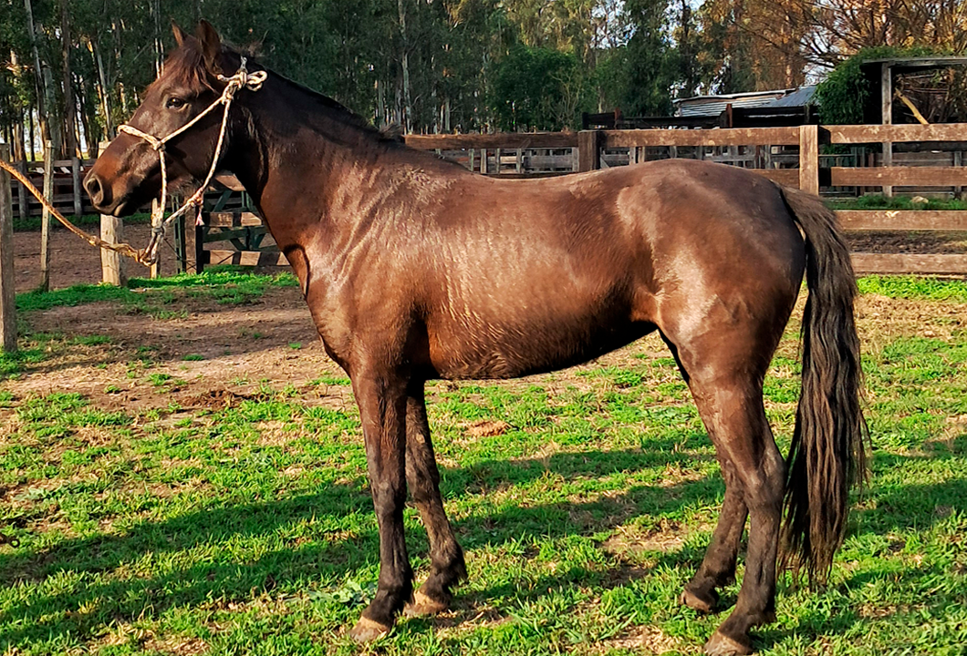 Muy linda potra zaina. Su madre corrió varias Marchitas y Enduros de menores. Trae como abuelo a Malicioso La Invernada, destacado en varias pruebas. Línea materna muy probada en la Cabaña.