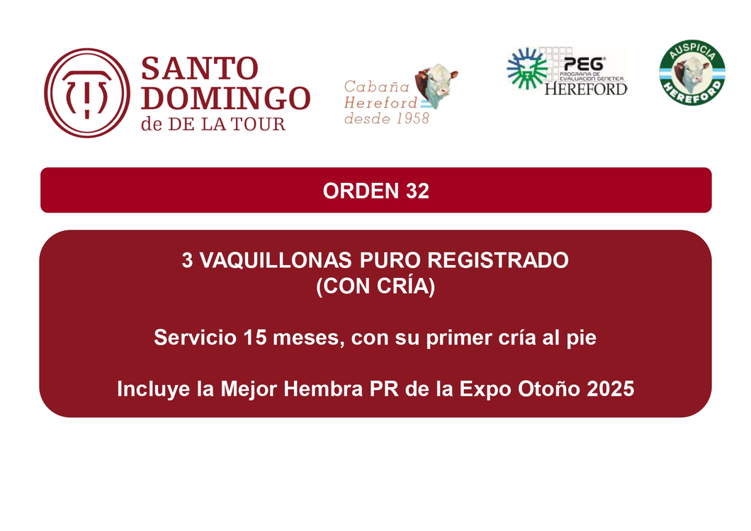 LOTE 32, VAQUILLONAS PR CON CRÍA - SANTO DOMINGO