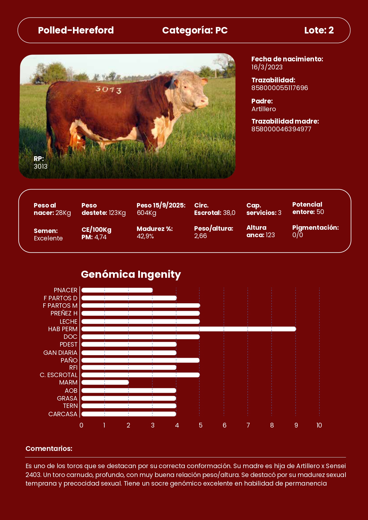 LOTE 2, 1 Toros PC 🔥 🔥 🔥 Lote Anterior Volver al remate Lote Siguiente Información del Lote Pedigree Ofertar Contacto Paysandú - Información del Lote Identificador: #338251 Categoría Toros PC Raza Polled-Hereford Certificado 3013 Departamento Paysandú Paysandú - Ofertar Fecha de cierre: 27 de Septiembre a las 19:00hs. Aún no tiene ofertas Plazo: Contado 30 días 45 días 60 días 90 días 120 días 180 días Contado, 30 y 60 dias Su Oferta en U$S: − + Step: -0,01 / +0,01 Programar puja hasta: Programar puja hasta Aumentar puja programada 3000.02 3000.2 ** Iniciar sesión para ofertar Ofertar Ofertas Recibidas U$S Fecha/Hora Estado Este lote aún no tiene preofertas. 137 Visualizaciones ClicData Pedigree Contacto Empresa: Genética Productiva Nombre*: E-mail* : Mensaje Enviar