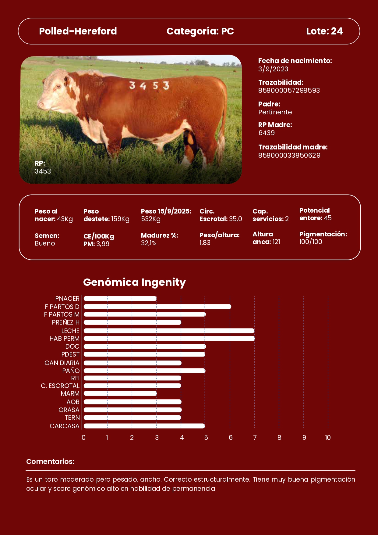 LOTE 24, 1 Toros PC Lote Anterior Volver al remate Lote Siguiente Información del Lote Pedigree Ofertar Contacto Paysandú - Información del Lote Identificador: #338273 Categoría Toros PC Raza Polled-Hereford Certificado 3453 Departamento Paysandú Paysandú - Ofertar Fecha de cierre: 27 de Septiembre a las 19:00hs. Aún no tiene ofertas Plazo: Contado 30 días 45 días 60 días 90 días 120 días 180 días Contado, 30 y 60 dias Su Oferta en U$S: − + Step: -100,00 / +100,00 Programar puja hasta: Programar puja hasta Aumentar puja programada 3200 5000 **Oferta al bulto Iniciar sesión para ofertar Ofertar Compra por U$S 99.000.000,00 Ofertas Recibidas U$S Fecha/Hora Estado Este lote aún no tiene preofertas. ¿Estás seguro de comprar el LOTE 1 Toros PC por U$S 99000000 ? 83 Visualizaciones ClicData Pedigree Contacto Empresa: Genética Productiva Nombre*: E-mail* : Mensaje Enviar