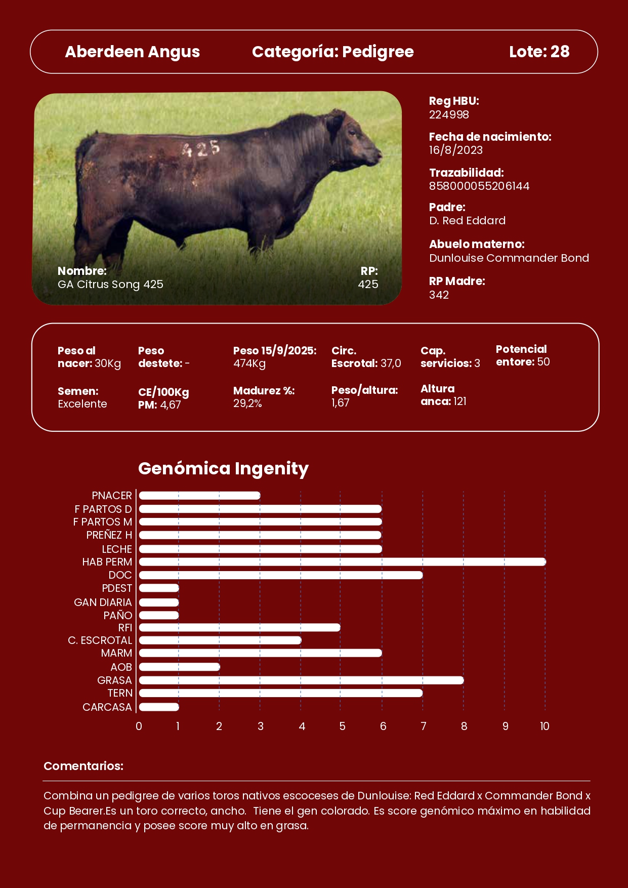 LOTE 28, 1 Toros PI Lote Anterior Volver al remate Lote Siguiente Información del Lote Pedigree Ofertar Contacto Paysandú - Información del Lote Identificador: #338277 Categoría Toros PI Raza Aberdeen Angus Certificado 425 Departamento Paysandú Paysandú - Ofertar Fecha de cierre: 27 de Septiembre a las 19:00hs. Aún no tiene ofertas Plazo: Contado 30 días 45 días 60 días 90 días 120 días 180 días Contado, 30 y 60 dias Su Oferta en U$S: − + Step: -0,01 / +0,01 Programar puja hasta: Programar puja hasta Aumentar puja programada 3000.02 3000.2 ** Iniciar sesión para ofertar Ofertar Ofertas Recibidas U$S Fecha/Hora Estado Este lote aún no tiene preofertas. 96 Visualizaciones ClicData Pedigree Contacto Empresa: Genética Productiva Nombre*: E-mail* : Mensaje Enviar