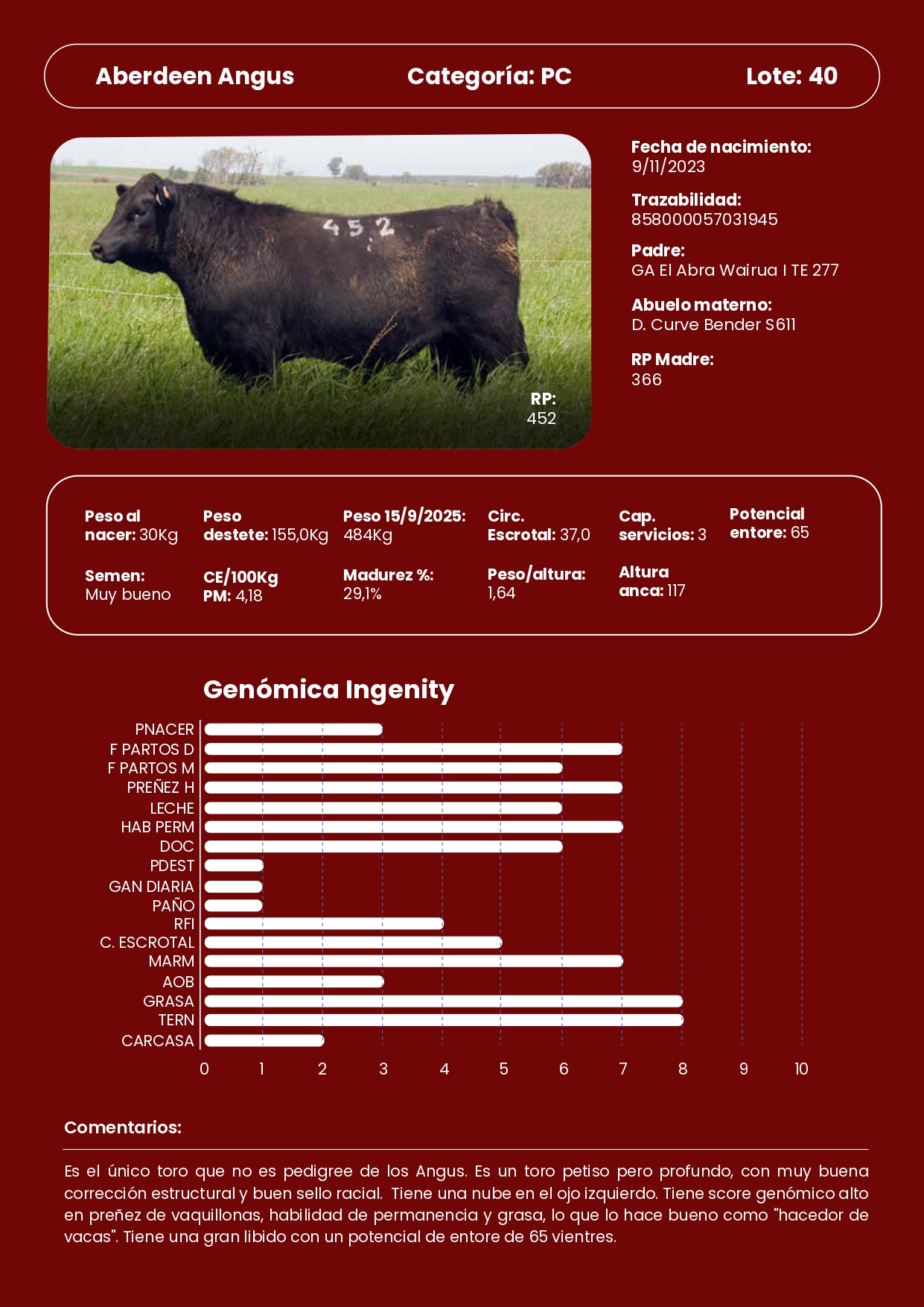 LOTE 40, 1 Toros PC Lote Anterior Volver al remate Información del Lote Animal Pedigree Ofertar Contacto Paysandú - Información del Lote Identificador: #338289 Categoría Toros PC Raza Aberdeen Angus Certificado 452 Departamento Paysandú Paysandú - Ofertar Fecha de cierre: 27 de Septiembre a las 19:00hs. Aún no tiene ofertas Animales: Plazo: Contado 30 días 45 días 60 días 90 días 120 días 180 días Contado, 30 y 60 dias Su Oferta en U$S: − + Step: -0,01 / +0,01 Programar puja hasta: Programar puja hasta Aumentar puja programada 3000.02 3000.2 ** Iniciar sesión para ofertar Ofertar Ofertas Recibidas U$S Fecha/Hora Estado Este lote aún no tiene preofertas. 66 Visualizaciones ClicData Animal PRECIO BASE 300.00 PRECIO BASE 300.00 Pedigree Contacto Empresa: Genética Productiva Nombre*: E-mail* : Mensaje Enviar