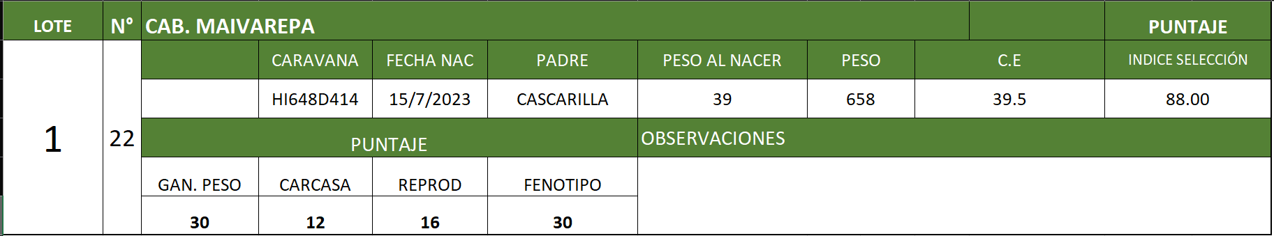 LOTE 1 - N° 22, Toro 🔥 🔥 🔥 Volver al remate Lote Siguiente Información del Lote Animal Pedigree Ofertar Contacto Entre Ríos - Información del Lote Identificador: #338290 Categoría Toros Departamento Entre Ríos Propietario CAB. MAIVAREPA Entre Ríos - Ofertar Fecha de cierre: 24 de Septiembre a las 19:00hs. Aún no tiene ofertas Animales: 22 Plazo: Contado 30 días 45 días 60 días 90 días 120 días 180 días Contado, 30 y 60 dias Su Oferta en $: − + Step: -200.000,00 / +200.000,00 Programar puja hasta: Programar puja hasta Aumentar puja programada 3900000 7500000 **Oferta al bulto Iniciar sesión para ofertar Ofertar Compra por $ 99.000.000,00 Ofertas Recibidas $ Fecha/Hora Estado Este lote aún no tiene preofertas. ¿Estás seguro de comprar el LOTE Toro por $ 99000000 ? 136 Visualizaciones ClicData Animal RP 22 PRECIO BASE 3500000.00 RP 22 PRECIO BASE 3500000.00 Información del Lote Contacto Empresa: JÁUREGUI LORDA S.R.L. Nombre*: E-mail* : Mensaje Enviar